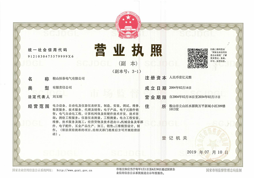 版權(quán)所有 鞍山恒泰電氣有限公司 企業(yè)營業(yè)執(zhí)照 遼ICP備20000862號(hào)-1